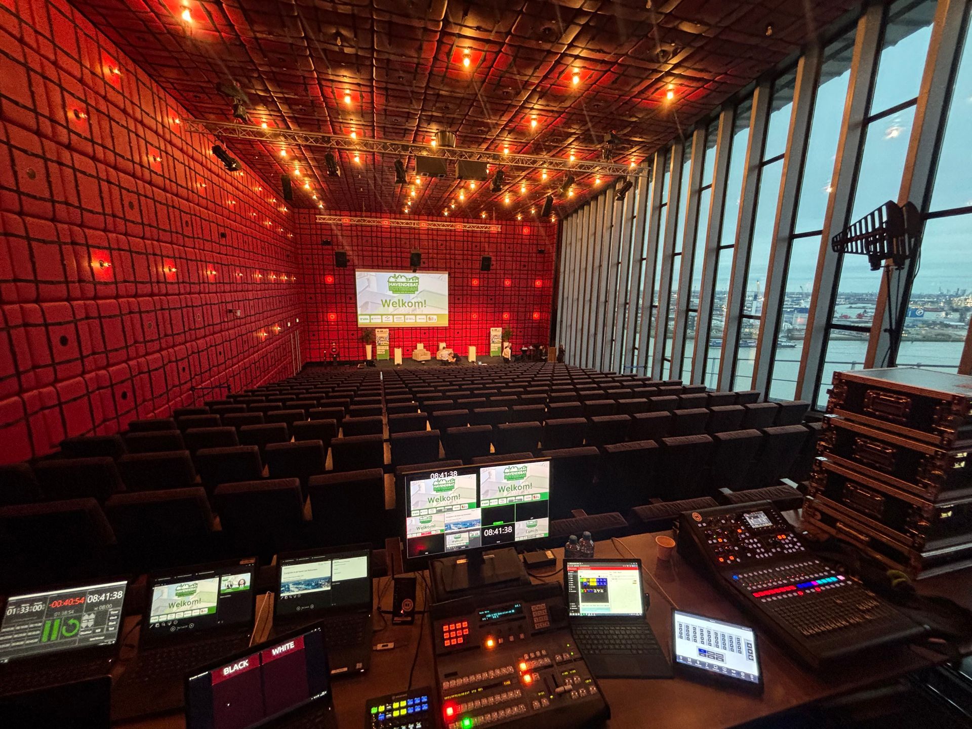 Wij verzorgde beeldregie, camerabediening en audiomixage, waarbij twee audiotechnici ieder een eigen mix maakten: één voor de zaal en één voor de livestream + opname.